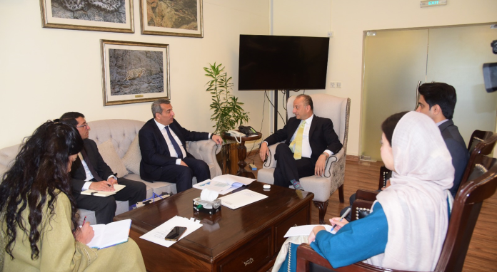 ISLAMABAD, FEB 19 /DNA/: His Excellency Mr. Khazar Farhadov, Ambassador of the Republic of Azerbaijan to Pakistan, called on the Federal Minister for Climate Change and Environmental Coordination, Dr. Musadik Malik, at his office in Islamabad. During the meeting, the Ambassador appreciated the strong stance taken by Dr. Musadik Malik during the ECO meeting on climate change, particularly his emphasis on collective global responsibility and his remarks regarding inconsistencies in international climate commitments. He acknowledged Pakistan’s constructive and vocal role in advocating equitable climate action for developing countries.