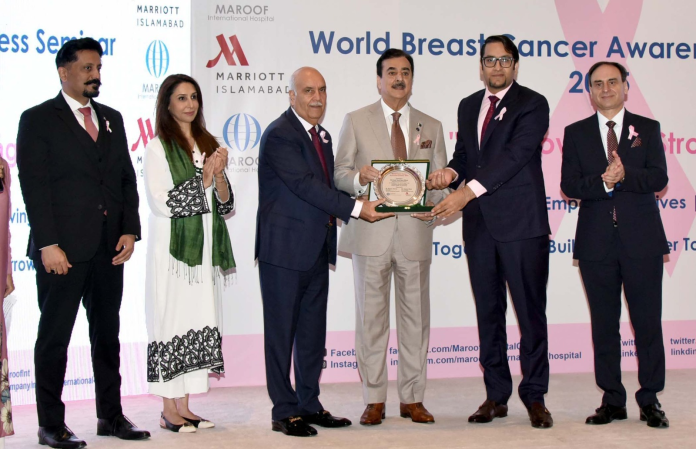 Chairman Senate Syed Yousuf Raza Gilani has underlined the need for joint efforts to create awareness and educate masses about the breast cancer as the disease still continues to pose threat to women population of the country. He expressed his views while addressing a seminar on breast cancer awareness as Chief Guest, jointly organized by Maroof International Hospital and the Islamabad Marriott Hotel. The event aimed to promote early detection, education, and community engagement in the fight against breast cancer.
