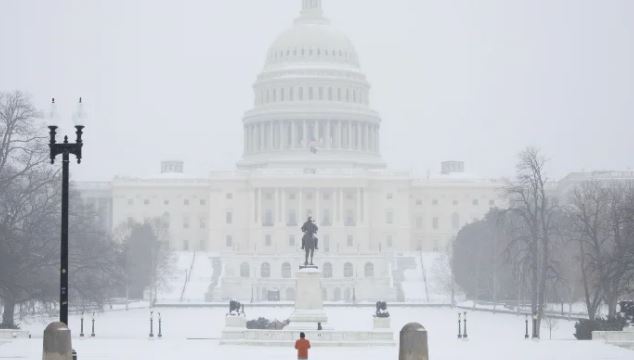 Residents in the capital Washington awoke to a blanket of several inches of snow on sidewalks and roads, followed by heavy sleet.