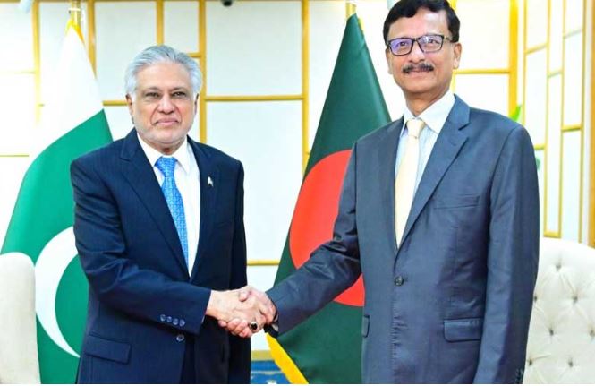 Dar, and the Bangladeshi Foreign Affairs Adviser, Touhid Hossain, reviewed bilateral trade and economic cooperation. The two leaders reiterated their commitment to strengthening cooperation in several sectors. They stressed the importance of sustainable ties to advance shared interests and promote regional peace and prosperity.