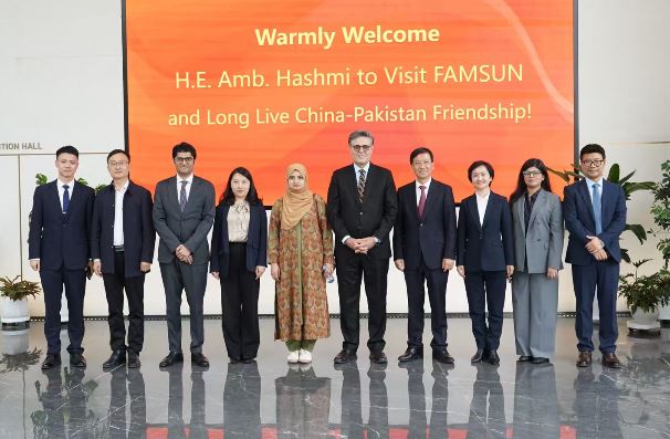 During his visit to FAMSUN, Ambassador Hashmi and his delegation were received by its President Chen Zhengjun. President Chen briefed them on the company’s state-of-the-art Smart Park which seamlessly optimizes resources, energy consumption, and ecological sustainability. The Ambassador appreciated FAMSUN’s growing footprint in Pakistan and encouraged the company to further expand partnerships in agricultural modernization, agro-processing, dairy products, and capacity building.