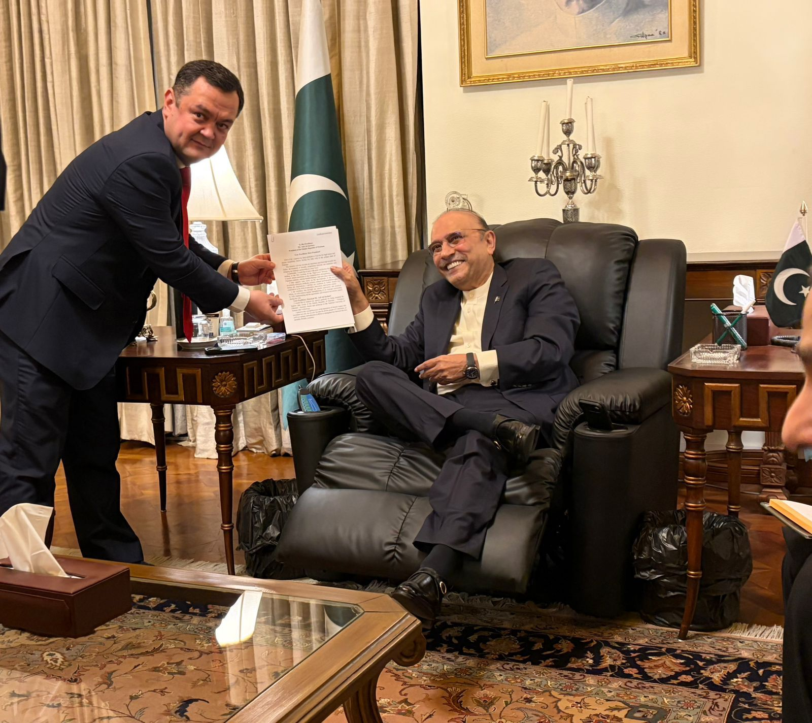 President Zardari reaffirmed Pakistan’s commitment to further strengthening cooperation with Uzbekistan in key sectors including food and agriculture, mining, information technology, tourism, health and banking. He welcomed Uzbekistan’s interest in importing halal meat, fruits and potatoes from Pakistan as a positive step towards enhancing bilateral trade.